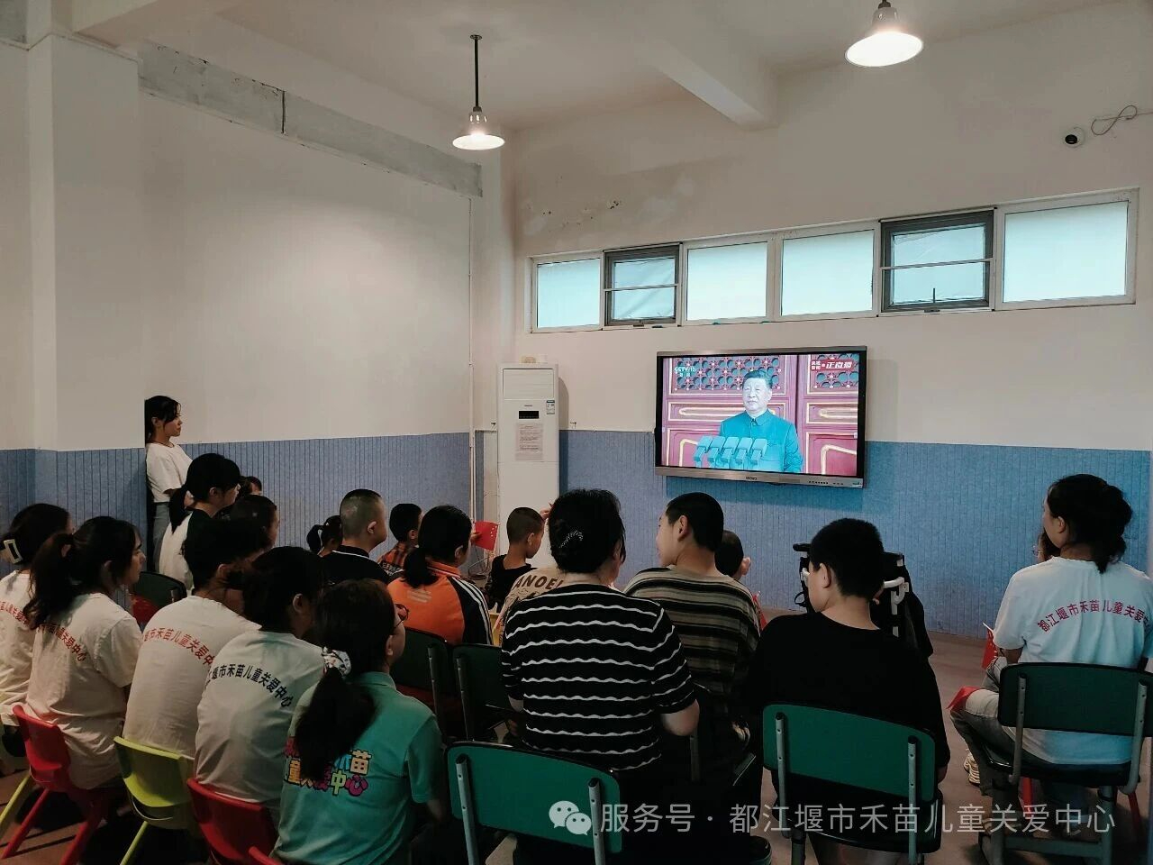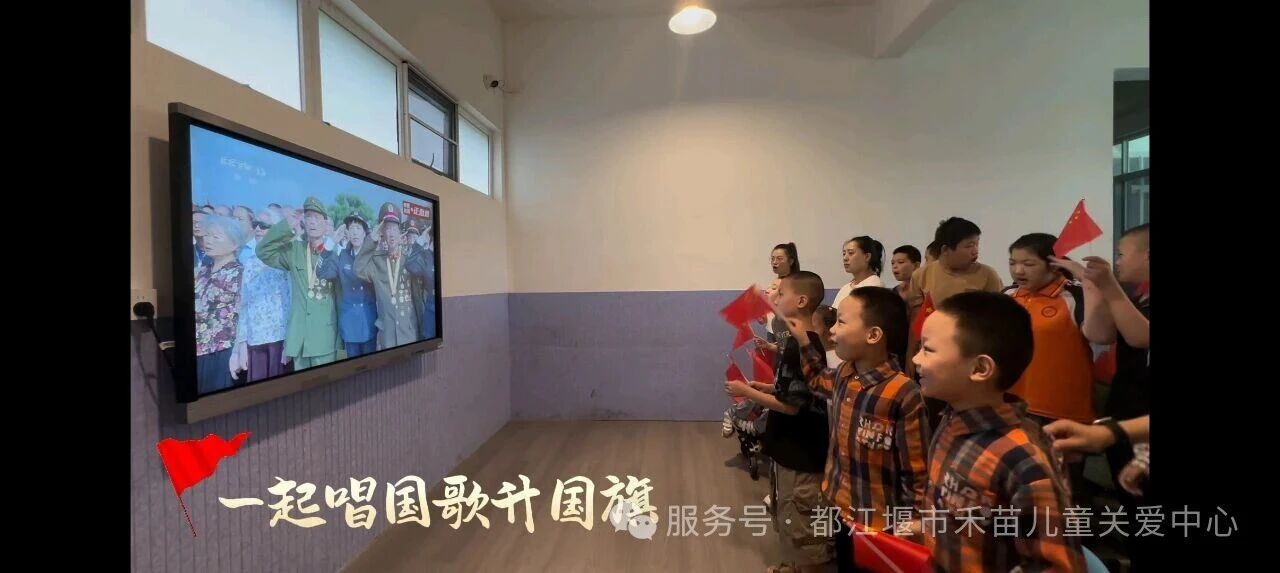 身在春风里,长在国旗下。在祖国的怀抱中,都江堰市禾苗儿童关爱中心的孩子们正茁壮成长。 在9月3日,都江堰市禾苗儿童关爱中心组织了一场特别的活动——观看阅兵仪式。孩子们怀着兴奋和好奇的心情,齐聚在一起,共同见证这一庄严而神圣的时刻。