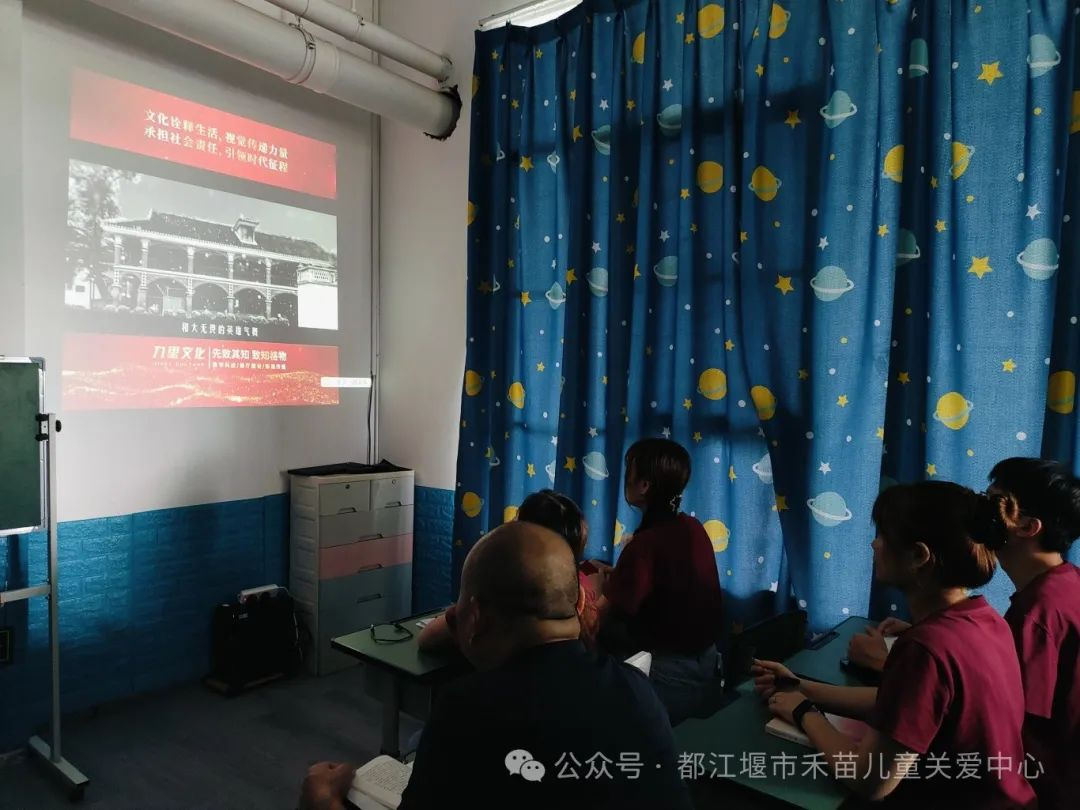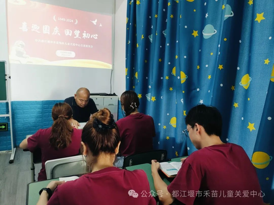 为庆祝中华人民共和国成立75周年,深入学习习近平新时代中国特色社会主义思想,贯彻落实党的二十届三中全会精神,全力营造厚植家国情怀、弘扬爱国主义精神的浓厚氛围,2024年9月27日,中共都江堰市禾苗残疾儿童关爱中心支部委员会组织开展了以“喜迎国庆 回望初心”为主题的党日活动。全体党员、入党积极分子以及老师代表参加活动。