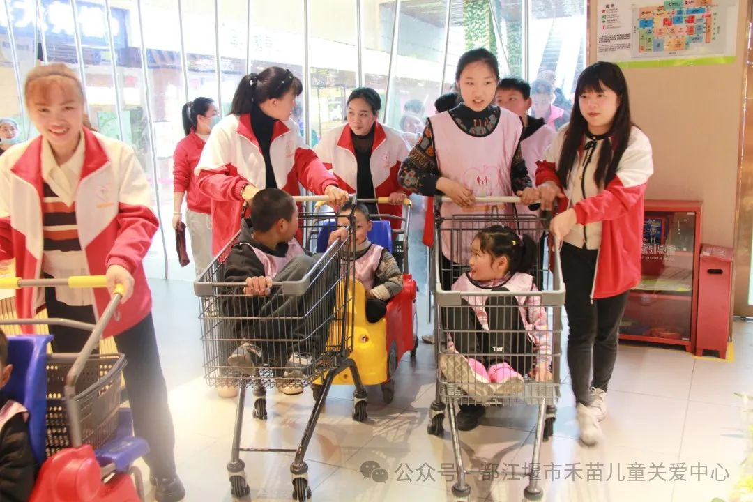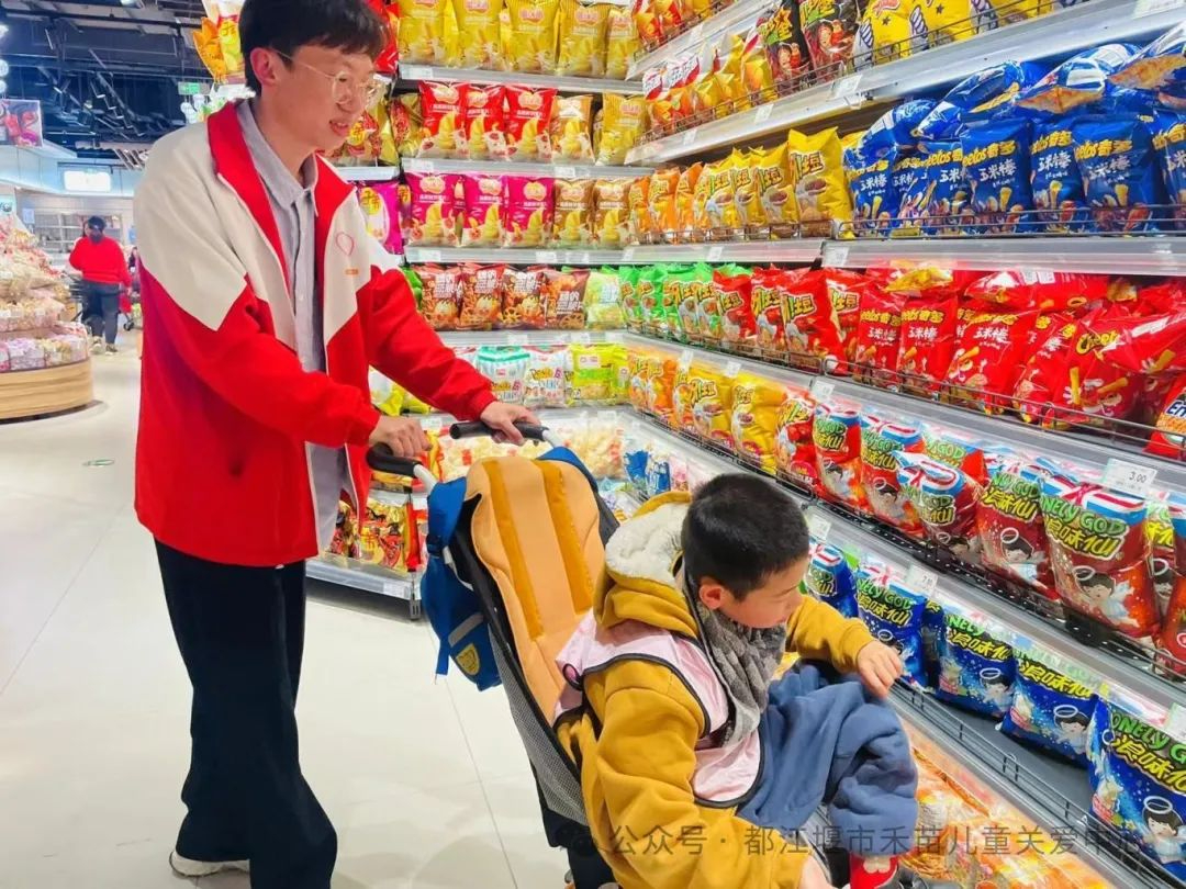 、关爱唐宝,一起为爱前行。都江堰市禾苗残疾儿童关爱中心在老师、家长、志愿者的带领下来到了都江堰市大融城”邻你生活超市“进行社会实践活动,让孩子们走进生活,融入社会。